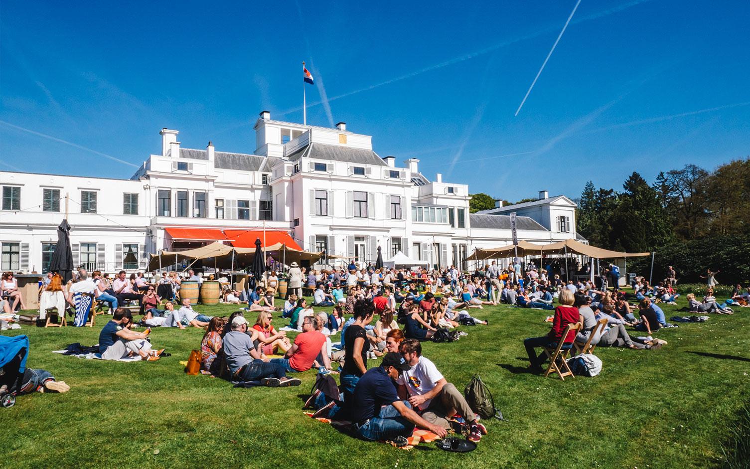Wijn drinken onder het genot van kunst en jazz in de achtertuin van Paleis Soestdijk